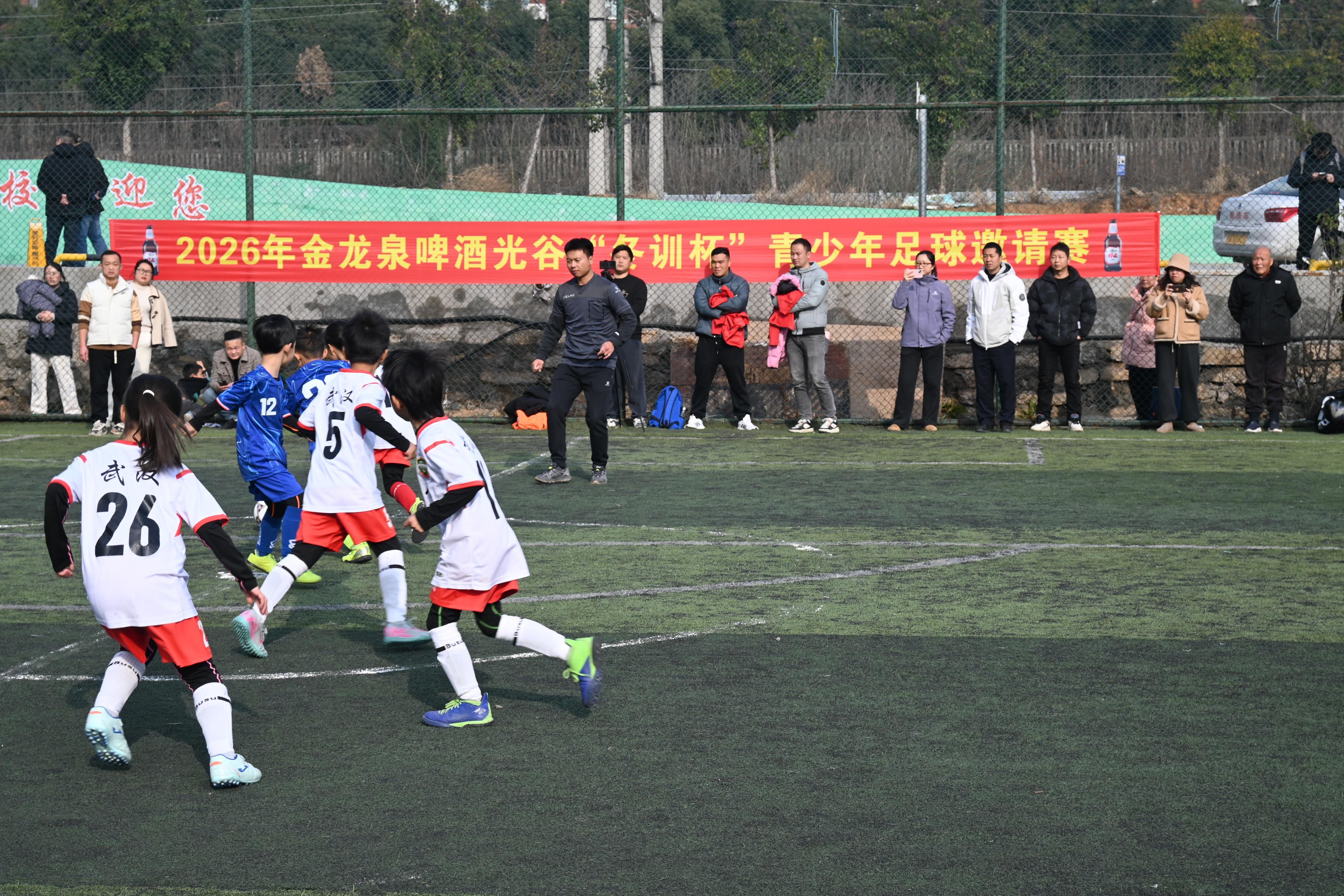 2月4日上午,2026年EHO泉匠天然苏打水光谷“冬训杯”青少年足球邀请赛在光谷聚星足球场拉开帷幕。赛事由光谷足协指导,武汉博鸿足球俱乐部主办,武汉聚星闪耀足球俱乐部、武汉博发足球俱乐部协办,武汉皇马体育策划有限公司承办。湖北传奇前锋蔡晟,前湖北三峡绿茵主教练李军,武汉博鸿足球俱乐部青训顾问方力,湖北电视台广告部副总经理刘孝桐出席了比赛开幕式。蔡晟宣布比赛开幕。